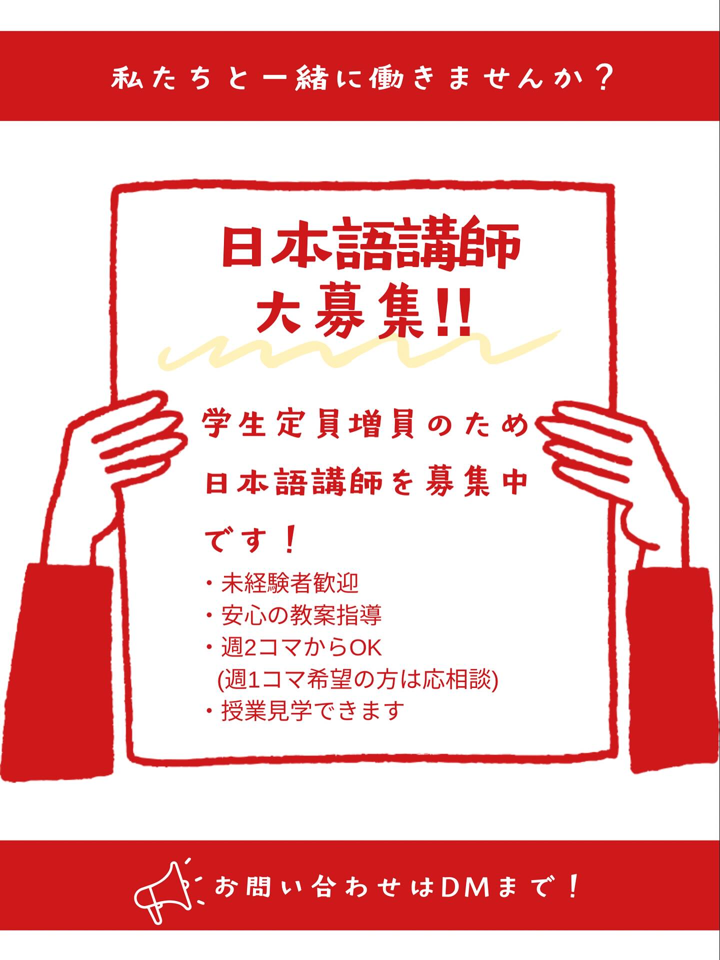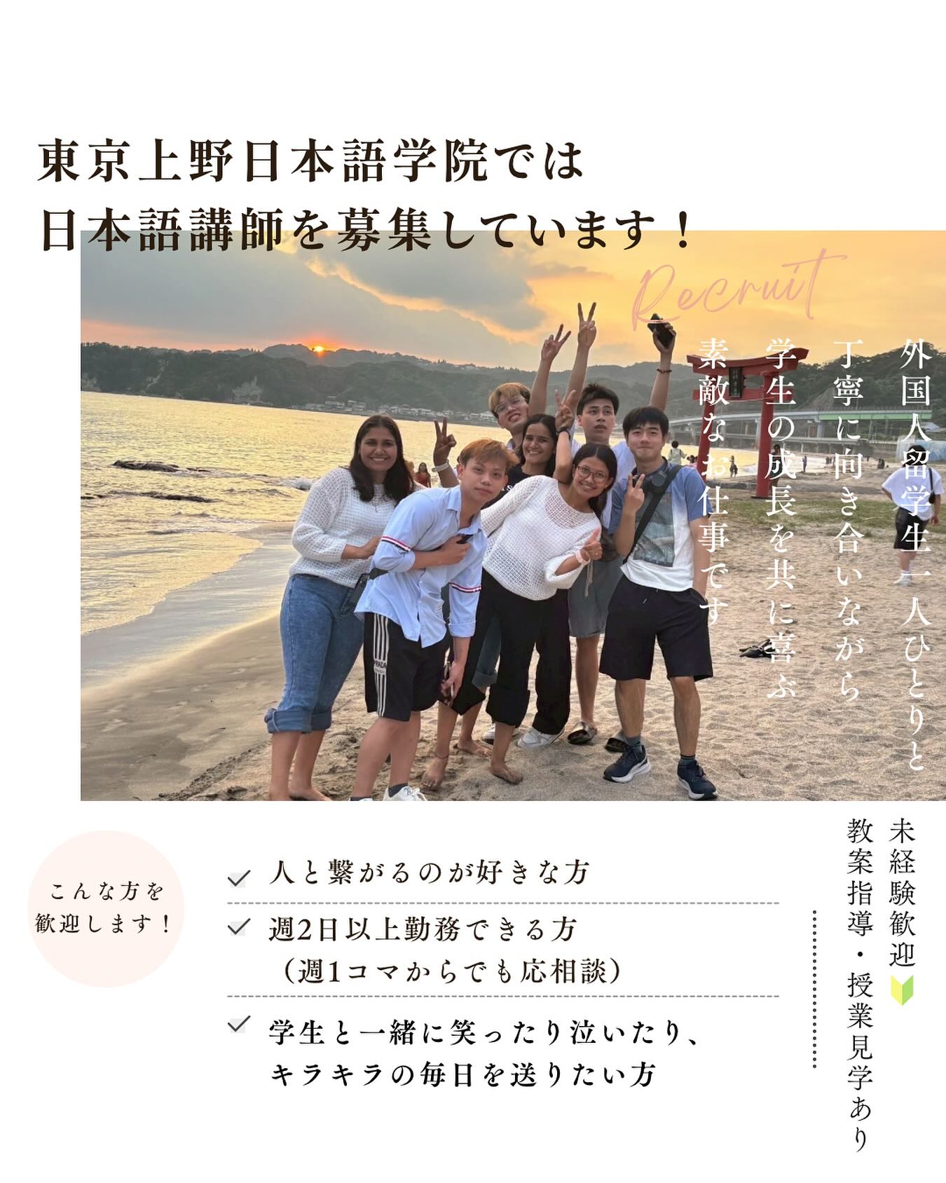 \日本語の先生を大募集中です!/ 学生定員増員のため、当校では日本語の先生を募集中です! 日本語教育に対する情熱をお持ちの先生 留学生の成長を共に喜び、自らも学び続ける意欲のある先生 ぜひ、私たちと一緒に留学生に日本語を教えてみませんか。 ご興味のある方は、DMかHPのお問い合わせよりご連絡ください。 #日本語 #日本語学校 #日本語教育 #日本語教師 #日本語講師 #御徒町 #秋葉原 #上野 #東京上野日本語学院 #留学生 #先生 #求人 #採用 #求人採用 #未経験 #未経験者 #外国人 #繋がる